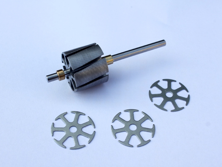 产品全部由高速冲床冲压而成,产品毛刺小,同心度、一致性好,按照大回转原理,每种冲片我们根据产品的形状及厚度采用专用设备,进行冲片回转使生产出来的电机噪音小,动平衡好,深得客户好评。